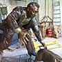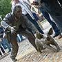 Die Figur wurde am 8. Juni 2012 festlich eingeweiht. Hier sind ein paar Impressionen dieses Tages und einige aus dem Entstehungsprozess. Der Glücksfänger wurde von der Sparkasse Mecklenburg-Schwerin der Stadt geschenkt. Die Sparkassentaler wanderten also erst in die Stadtkasse und zuletzt, verdientermaßen in die Taschen aller, die an der Figur gearbeitet haben. Zudem findet man auf dem Wege zum Rathaus noch so manchen verlorenen Taler, der dem Glücksfänger heimlich aus der Manteltasche entflohen ist. Moneten, Pinkepinke, Zaster, Marie, Kohle Mäuse, Öcken. Alles Worte für den Treibstoff unseres Alltags. Wer etwas genauer hinschaut, der findet all das und noch mehr. Es ist eben ein wahrhaftes Schnippchen zum Thema Geld, das hier geschlagen wurde. Zum schmunzeln und nachdenken in Bronze gegossen und sicher bald ein Wahrzeichen für Wittenburg.